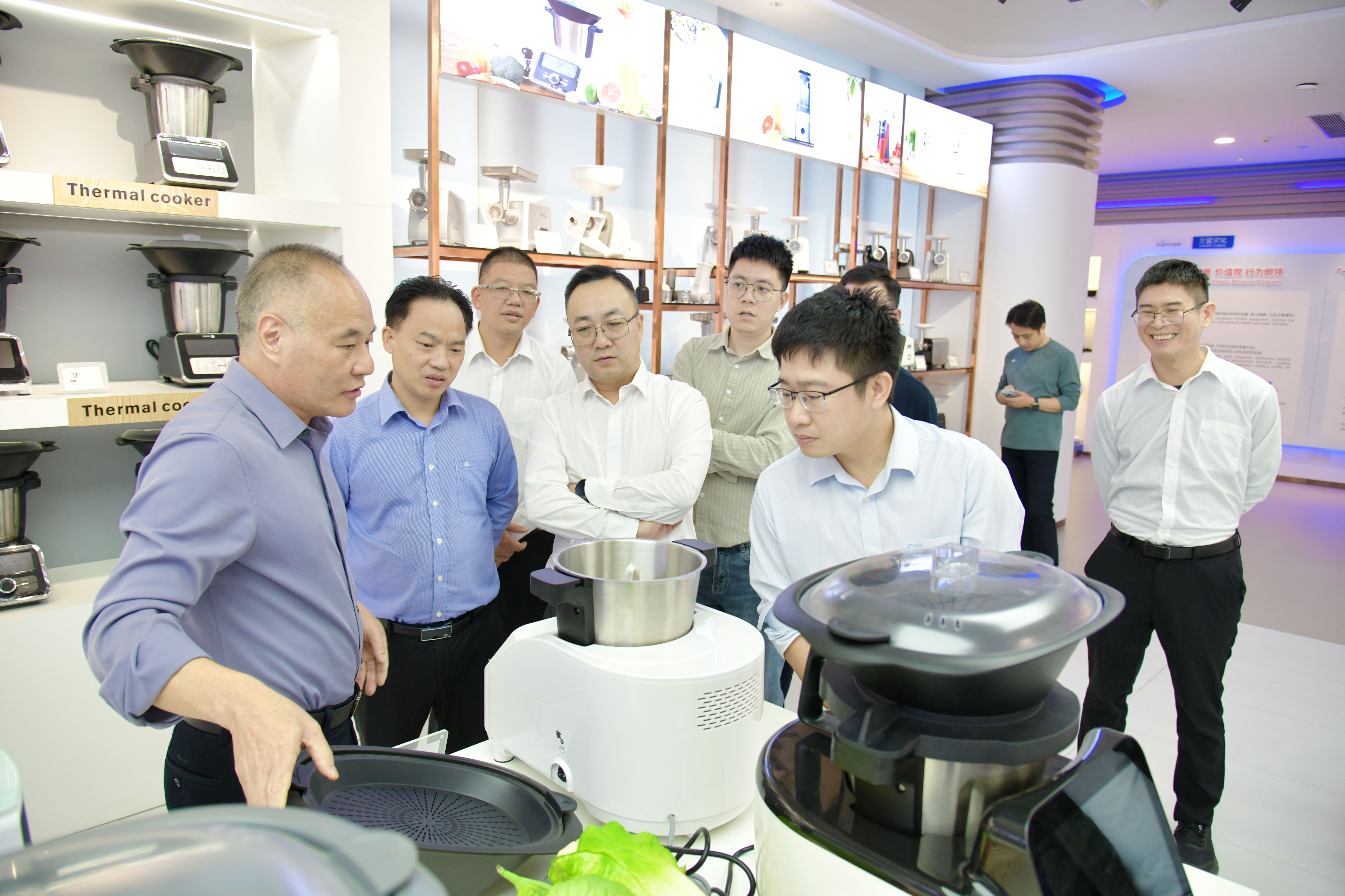 走进技术中心与智能研究院,张育奇总经理向考察团详细介绍了企业在智能制造与数字化转型方面的创新成果,充分展现了联创三金在智能家电领域的技术领先优势与持续创新能力。