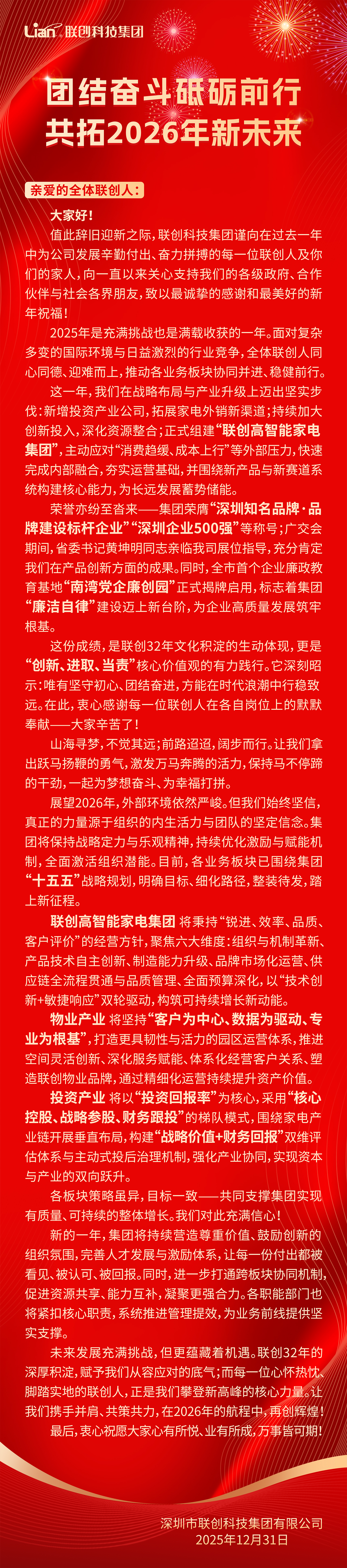 团结奋斗增效率 锐进创新拓市场——联创科技集团2025年总结表彰暨2026年工作部署大会圆满召开