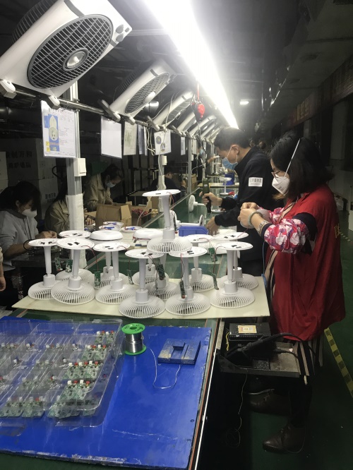 支援生产首日,即2月27日晚上19:00,在忙完一天的本职工作后,来自人力、采购、行政、IT、运营、物业、综合管理等多个部门的支援人员戴着口罩在生产车间报到。支援人员量体温、穿上鞋套并经过除尘、消毒等防疫措施后,才进入生产车间。经过简单的技术培训后,由志愿者组成的行政人员专线准时开线并顺利出机!